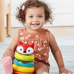 Apile, clasifique, haga sonar y haga rodar con nuestro juguete para apilar anillos para bebés • Con un lindo amigo Zorro y una base mecedora, al bebé le encantará agarrar y apilar los cuatro anillos de colores • Una forma lúdica de fomentar las habilidades motoras finas y la coordinación mano-ojo aprendiendo mientras se divierte •